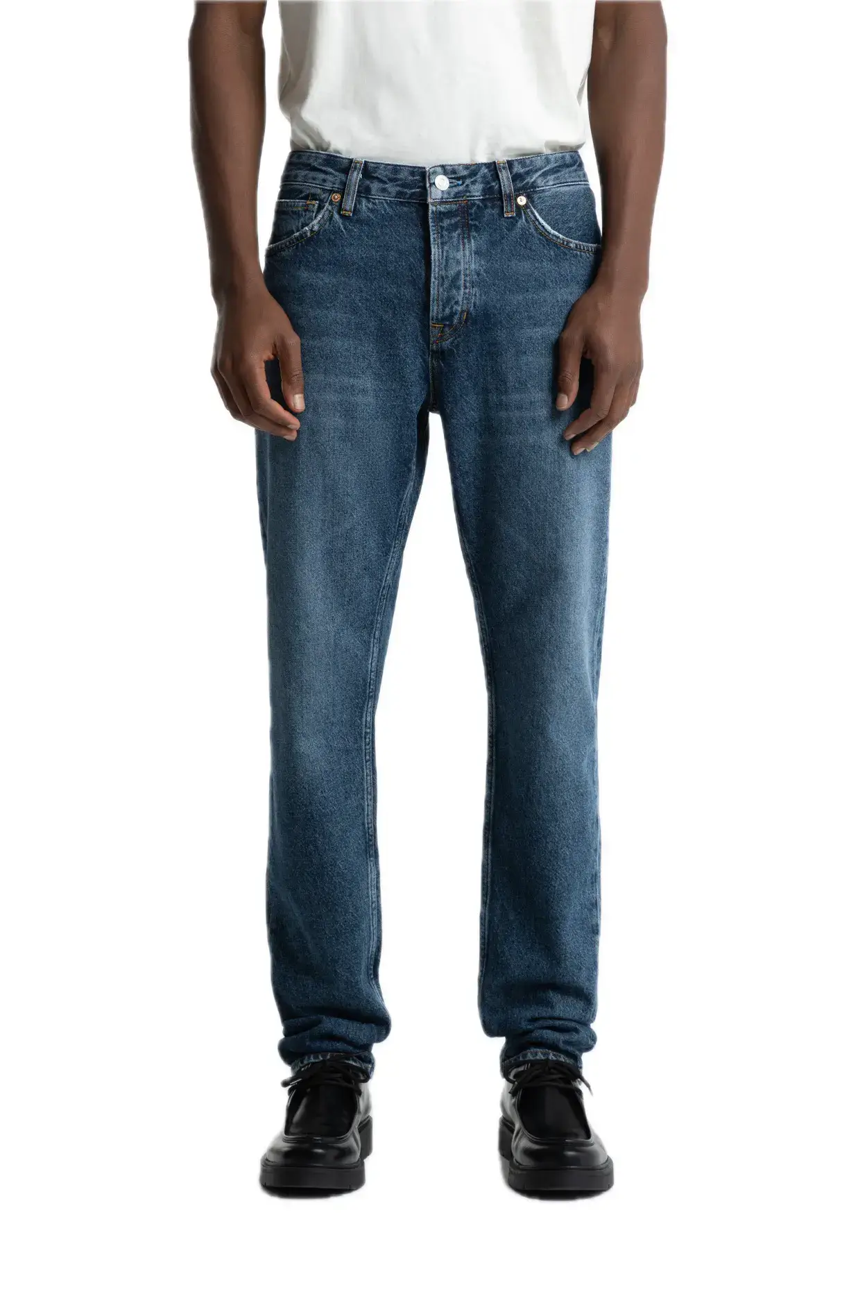 Als klassische Five-Pocket-Jeans punktet die Jerrick mit Button-Fly-Verschluss, recycelten Metallknöpfen und einem veganen Markenpatch – für kompromisslosen Stil mit Verantwortung.