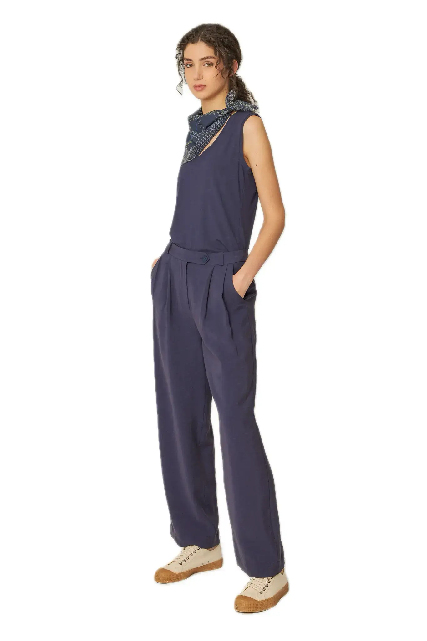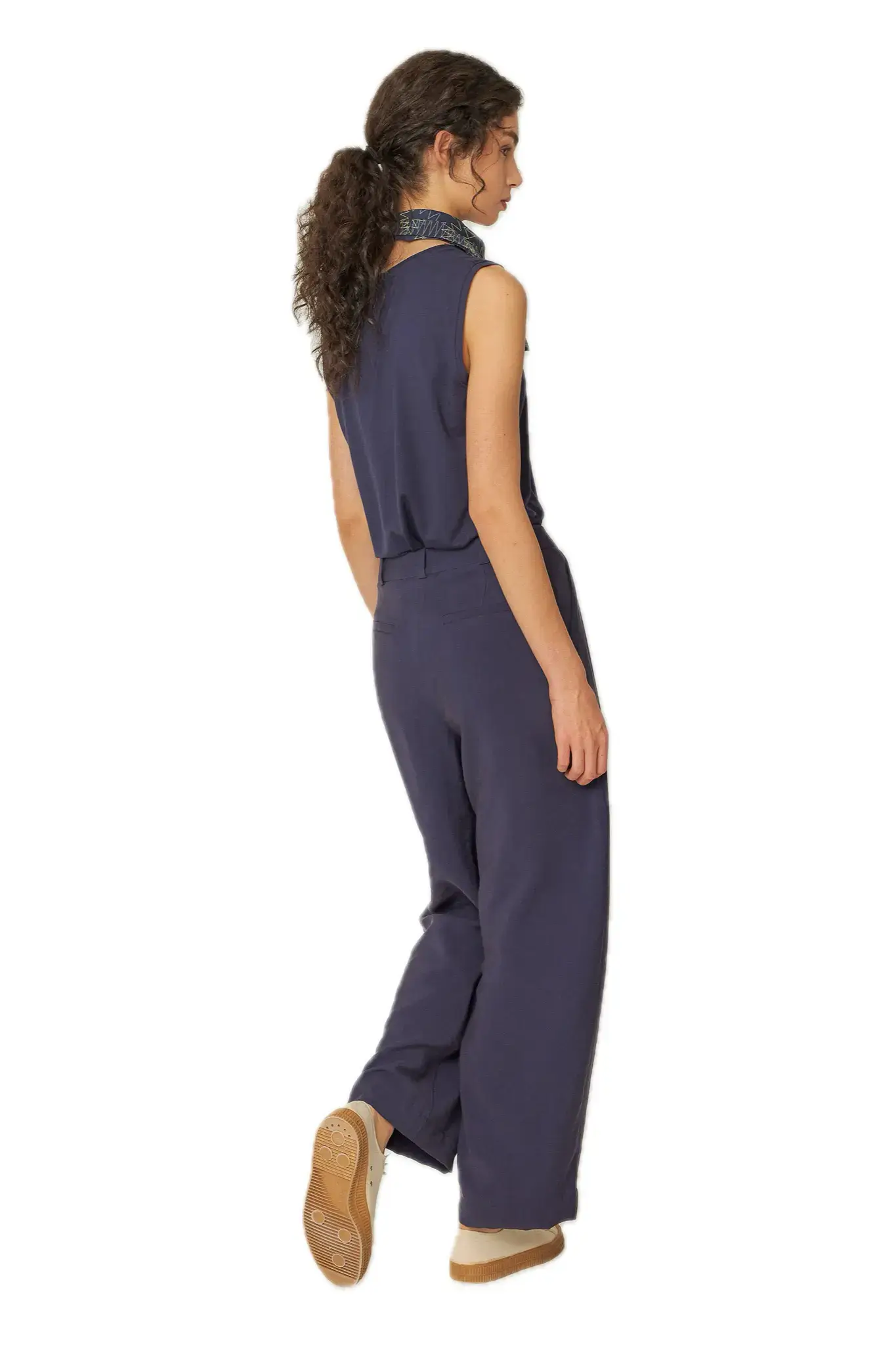 Que ce soit au bureau ou pour des looks décontractés élégants, ce pantalon vegan pour femme en violet marine peut être combiné de nombreuses façons. Le tissu de haute qualité et la fermeture à glissière avec bouton garantissent un ajustement parfait. Un incontournable pour les femmes soucieuses de leur style et qui apprécient la mode équitable.