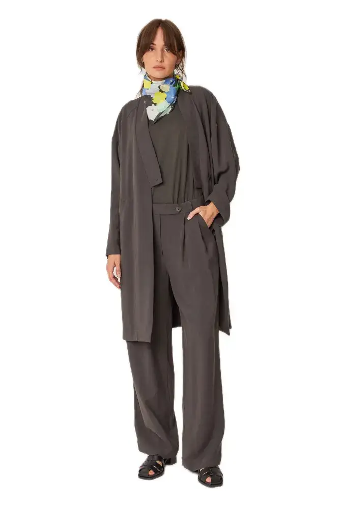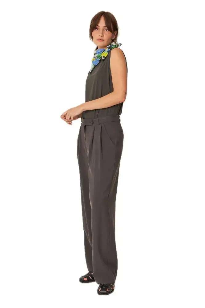 Le pantalon plissé SKFK Haide allie élégance classique et design durable. Leur taille haute et leur jambe droite créent une silhouette flatteuse, tandis que la coupe fluide offre un confort maximal. Le pantalon possède des poches latérales et des poches passepoilées à l'arrière - des détails fonctionnels qui complètent le look.