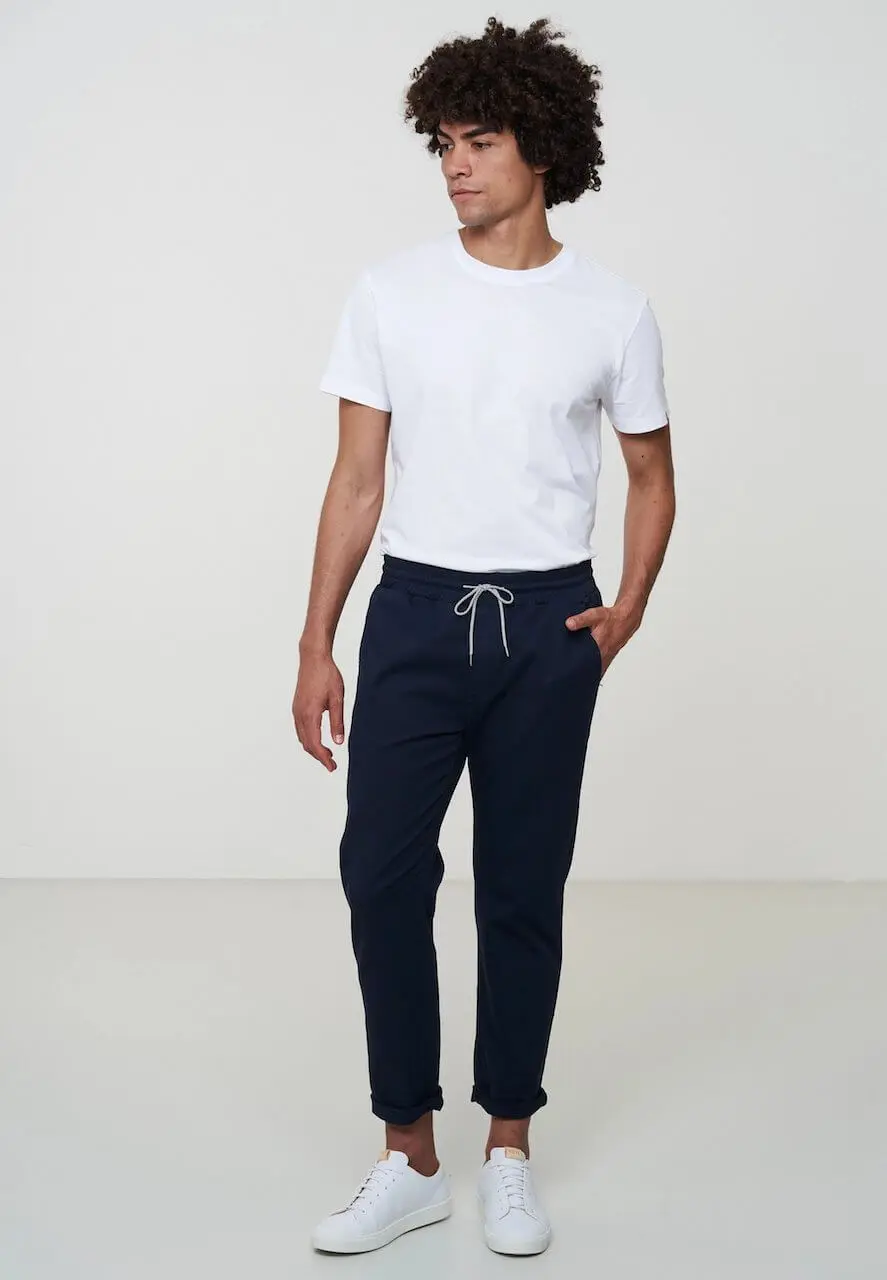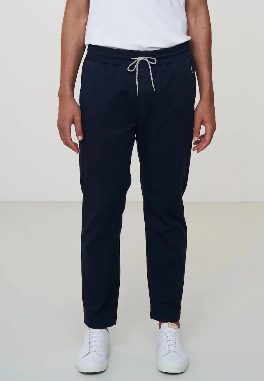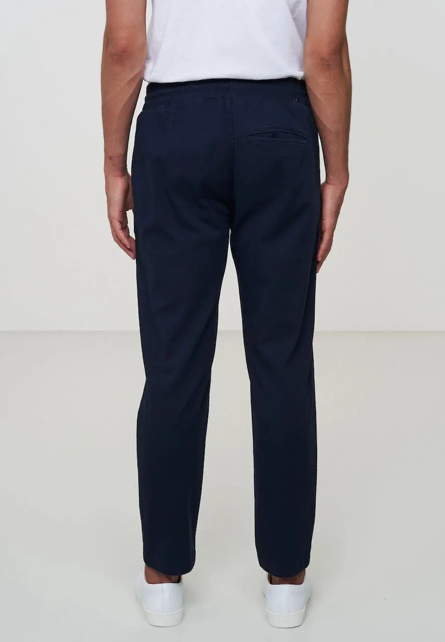 Ein schlichtes Design. Diese Canvas-Hose aus robuster Bio-Baumwolle ist ideal für den Alltag. Die Hose hat eine normale Passform und ein schmal zulaufendes Bein, wodurch eine minimalistische Silhouette entsteht. Der breite elastischer Bund mit Kordelzug sorgt für mehr Lässigkeit. Ein Modell, auf das man immer wieder gerne zurückgreift.