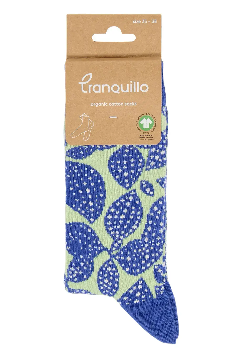 Fröhlich, frisch und stilvoll – die Jade Socken von Tranquillo bringen mit ihrem blauen Blättermotiv auf aquamarinfarbenem Hintergrund verspielte Akzente in deinen Look. Das dezente Muster wirkt lebendig und macht die Socken zum besonderen Hingucker – ob im Alltag, im Büro oder gemütlich zu Hause.